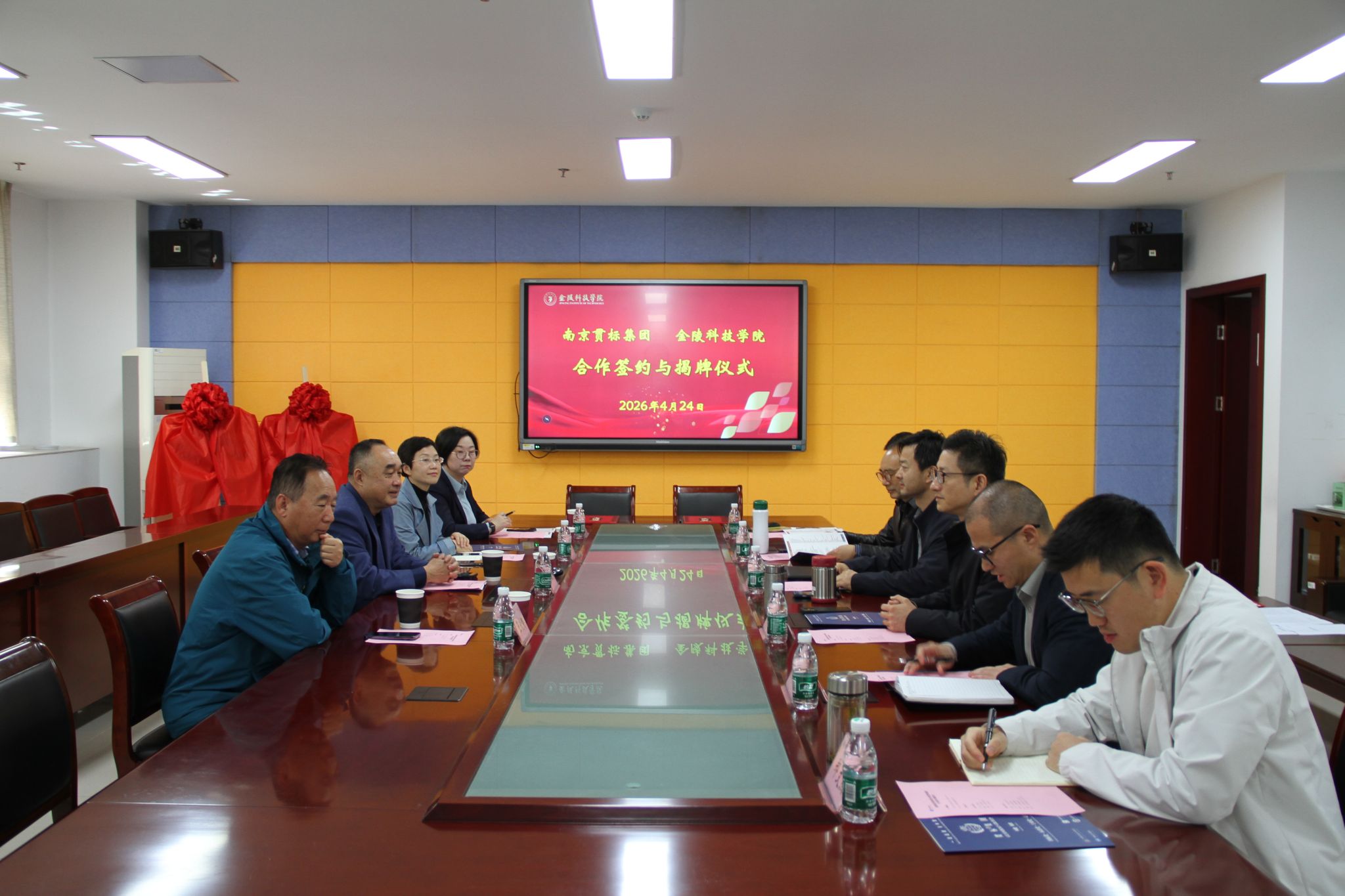 与南京贯标集团合作框架协议签约暨揭牌仪式在科技楼3号楼409会议室举行。南京贯标集团董事长陈健,副总经理金海容、规划发展委主任王欣荣、办公室主任张娟,成人抖音