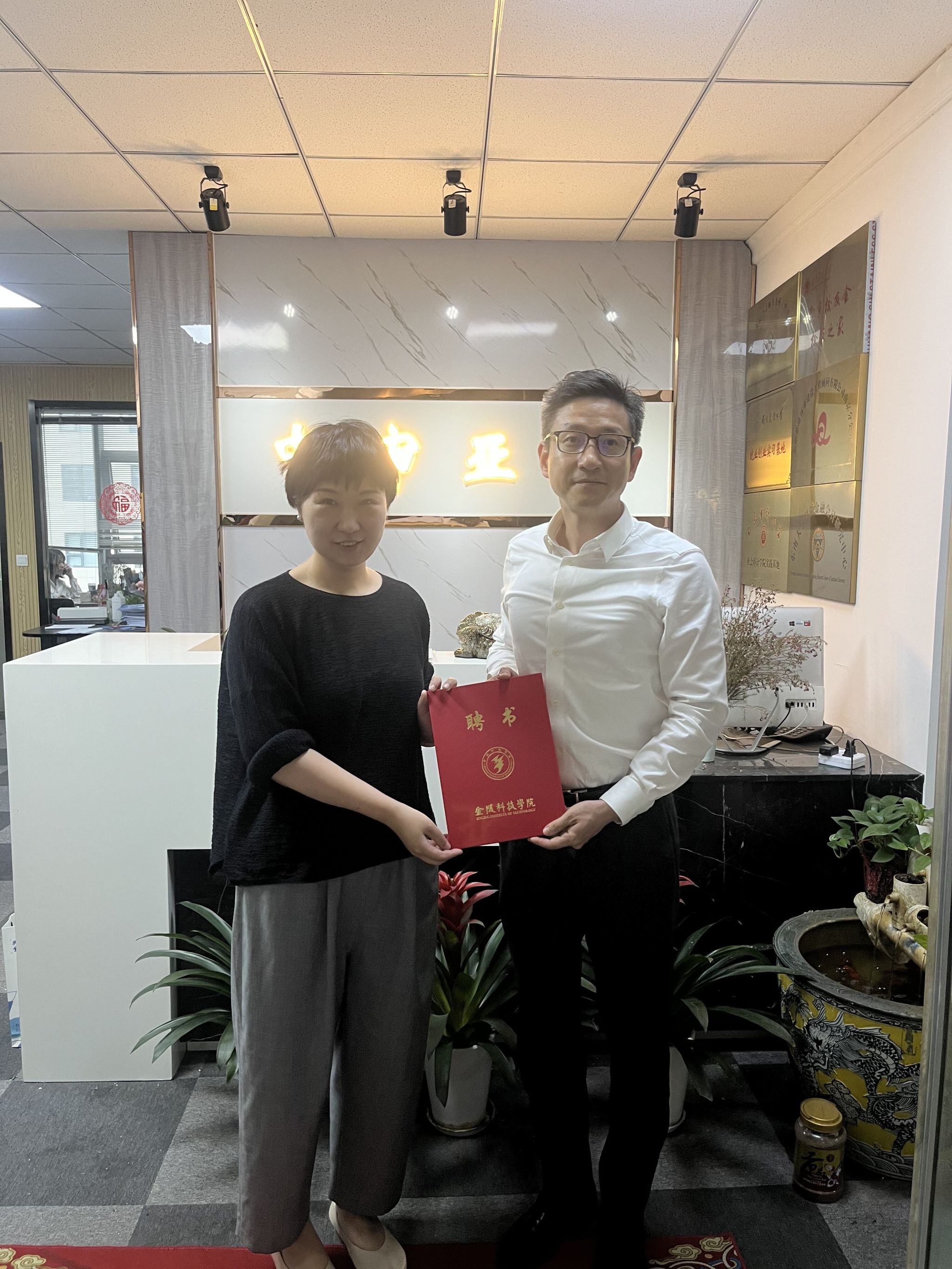 交流会中,双方举行了校外实习基地挂牌仪式,正式搭建起校企实践教学合作平台,为学生提供了更广阔的实践锻炼空间。同时,刘磊院长向董娟合伙人颁发“企业班主任”聘书,聘请其担任成人抖音