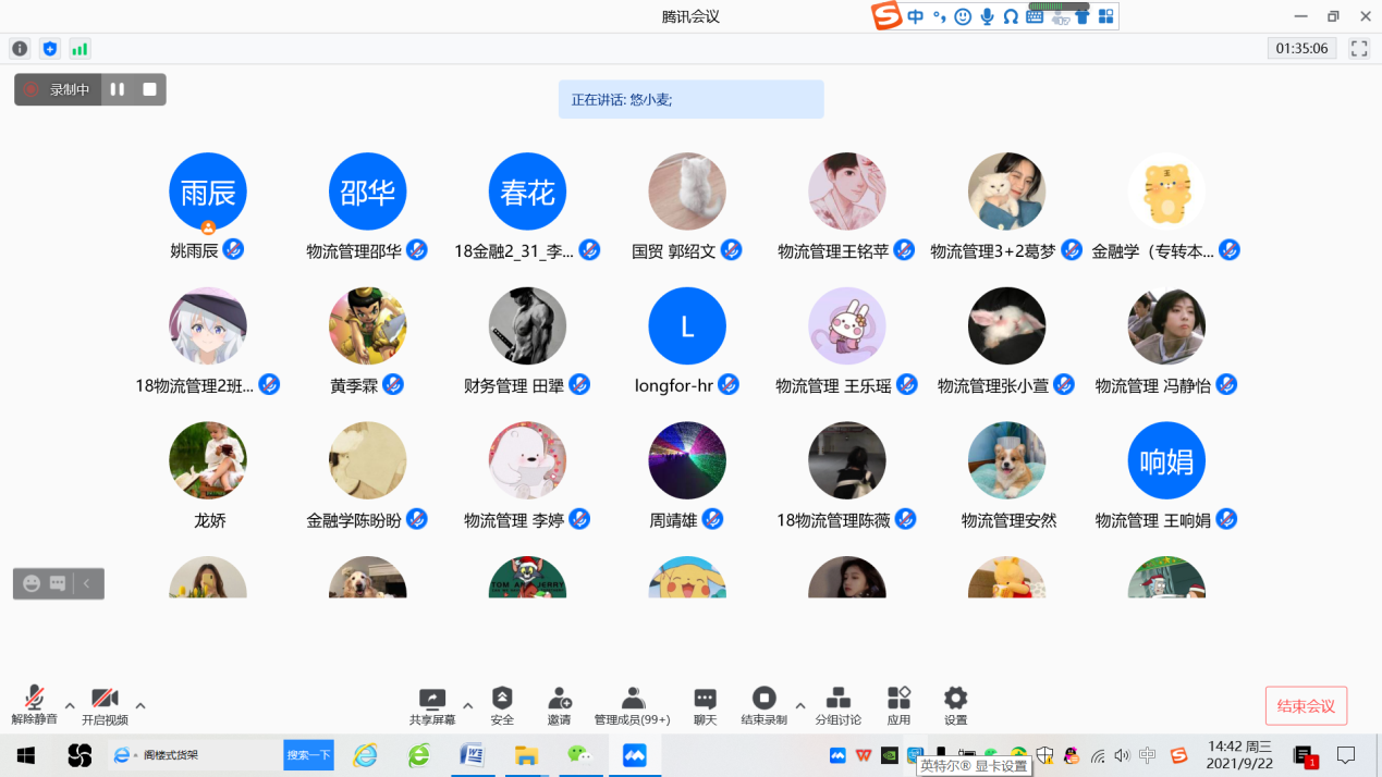 2021年9月22日下午1:30—3:30,成人抖音 物流系秋季线上宣讲会(腾讯会议号843304915)顺利召开,会议由物流系副主任姚雨辰主持,苏宁物流、京东物流、龙湖集团、合纵连横、盒马鲜生共5家企业进行了宣讲,成人抖音 毕业班共120多人参会。会议提供了多家企业上百个岗位,为企业用人需求和学生实习就业搭建了良好的平台,促进了专业人才的培养和学生就业。