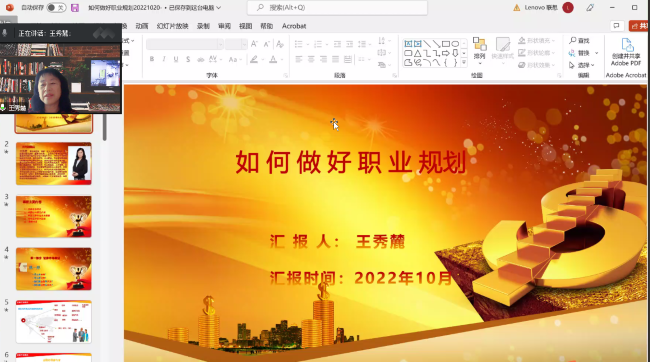 学生分别进行题为《财富积累和资本流向》和《如何做好职业规划》的线上学术报告。讲座由成人抖音