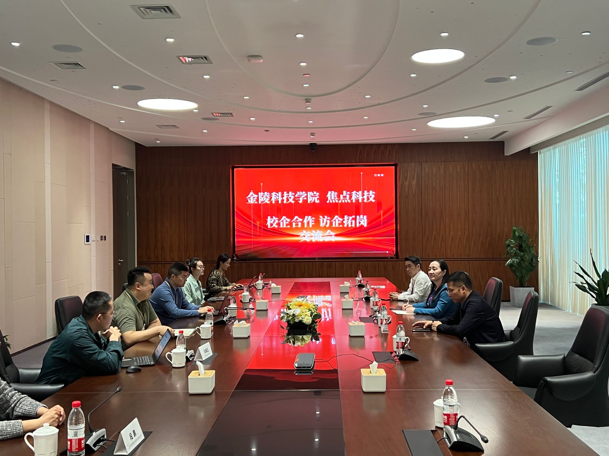 “访企拓岗”第二站是焦点科技股份有限公司。焦点科技-中企教育公司总经理姚俊、扬立等对金陵科技学院一行的到来表示热烈的欢迎并带领大家参观了企业发展史智能展厅、焦点科技与金陵科技学院校企合作人才养基地及企业生态环境等,重点介绍了公司着眼全球的发展布局、现有主要在建项目情况及主要成果。在座谈会上,顾晓燕介绍了学校的办学历史、办学理念、人才培养特色,以及学校大力实施“南京化体系战略”和“网络化体系战略”的具体举措和成效,特别是学校在不断深化“产教城”融合、“政校企”合作,积极创新人才培养模式,深化毕业生就业创业工作等方面取得的成绩,追溯了成人抖音