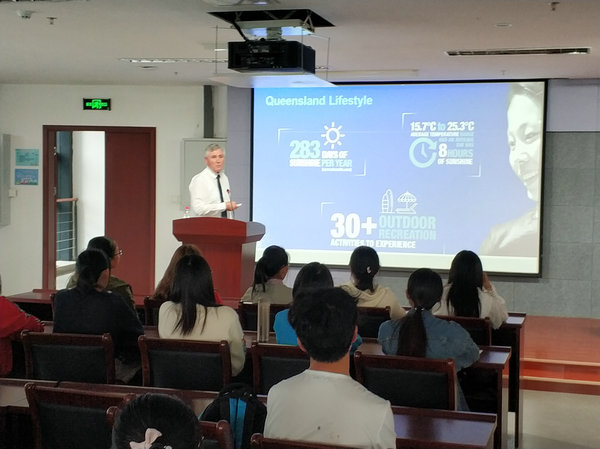 讲座中,Peter教授对工业4.0的概念作了详细的解释,介绍了新时代背景下会计专业学生的发展方向以及就业范围。他结合毕业生需要具备的职业技能以及会计行业的发展趋势介绍了昆士兰科技大学的优势。此后,Nancy老师又对校际合作项目进行了说明,并全面介绍了澳洲留学生活的注意事项。