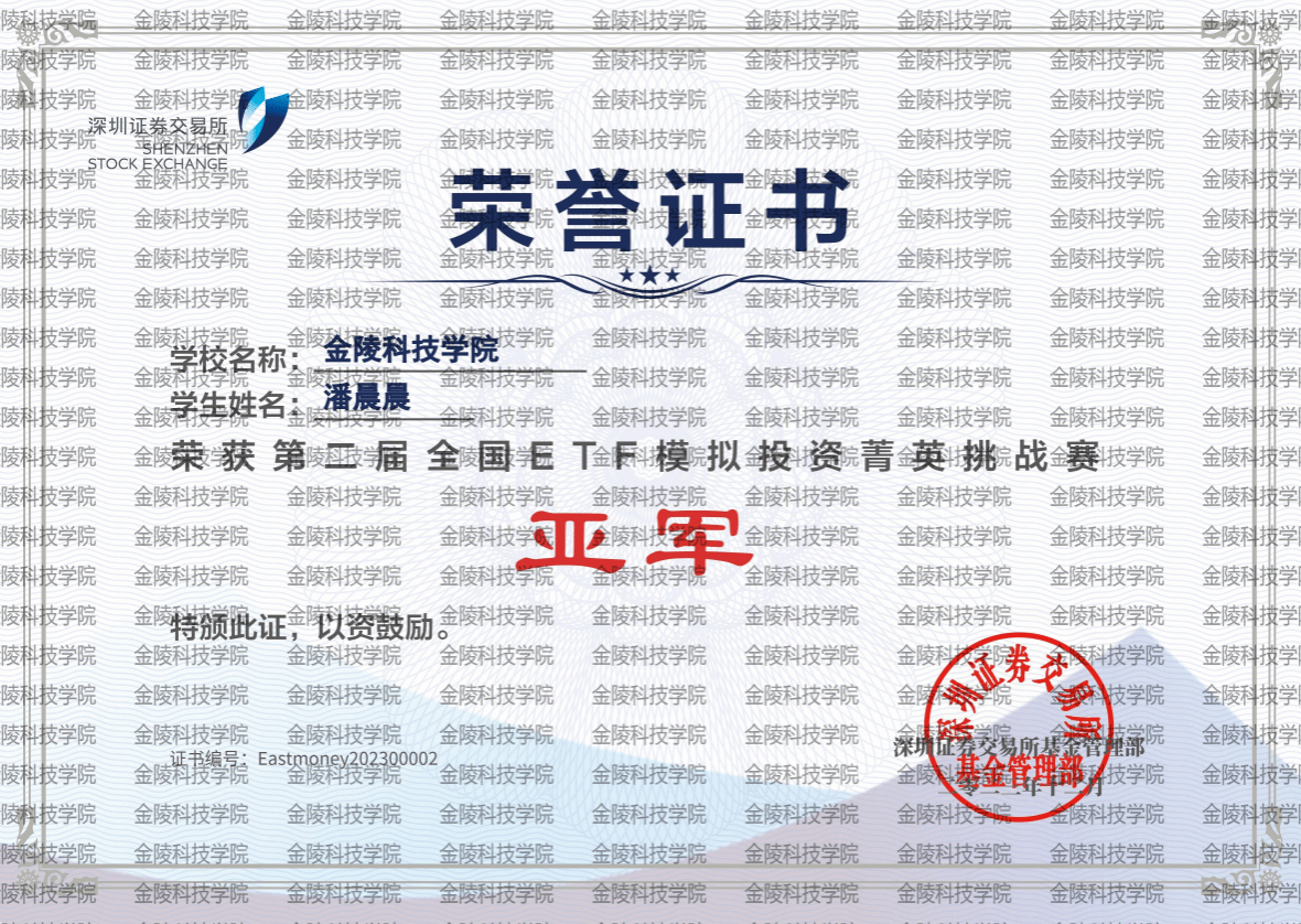 金融学专业学生潘晨晨同学荣获第二届全国ETF模拟投资菁英挑战赛亚军。成人抖音