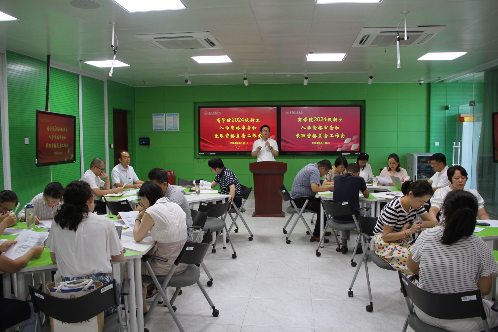 召开了2024级新生入学资格审查和录取资格复查工作布置会。会议由副书记孙亮主持,院长刘磊、副院长陶应虎、副院长黄阳出席会议,2024级新生班班主任、全体辅导员及参与第三轮复核的部分行政人员参加了会议。