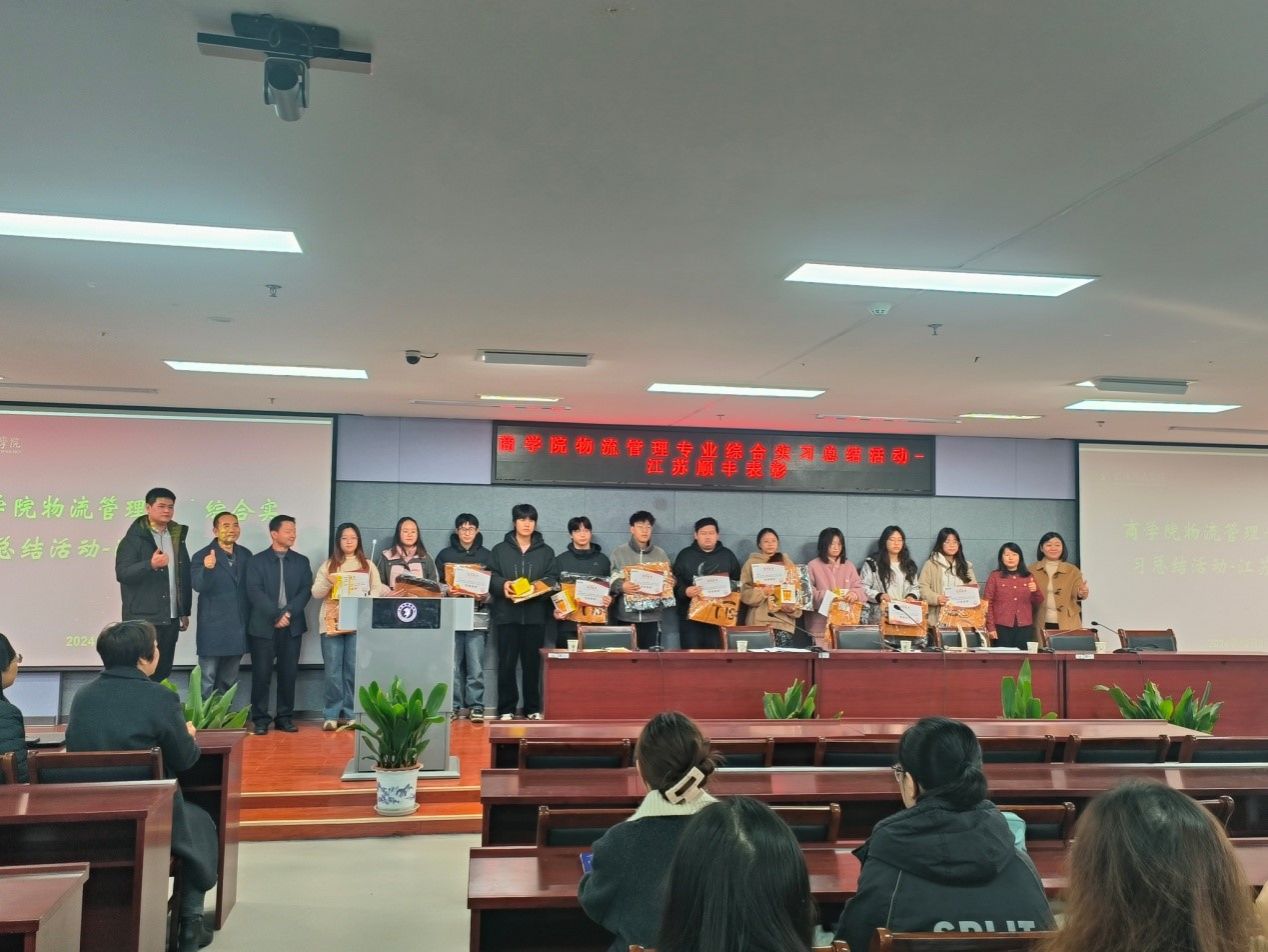 物流系和江苏顺丰速运有限公司联合召开顺丰速运实习总结暨表彰大会。江苏顺丰速运有限公司副总经理吴伟琴、人才生态供应链负责人涂娟娟和游伟波经理,成人抖音