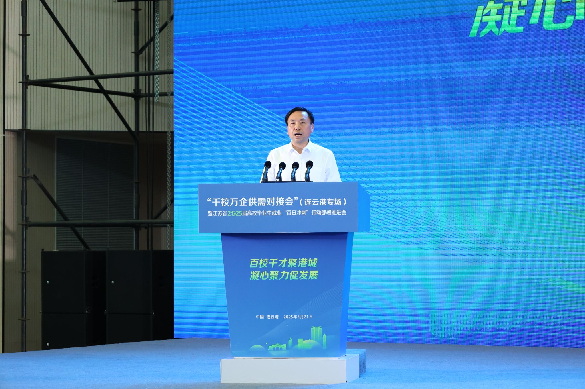 下午“千校万企供需对接会”(连云港专场)暨江苏省2025届高校毕业生就业“百日冲刺”推进会在连云港师范学校顺利召开。会上连云港市委副书记、市长邢正军,江苏省教育厅二级巡视员张鲤鲤,教育部高教学生司副司长肖琦先后发言。