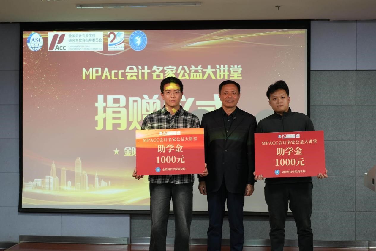 主题报告结束后,举行了“MPAcc公益大讲堂”助学金捐献仪式。杨雄胜教授将本次讲座课酬全部捐献给成人抖音