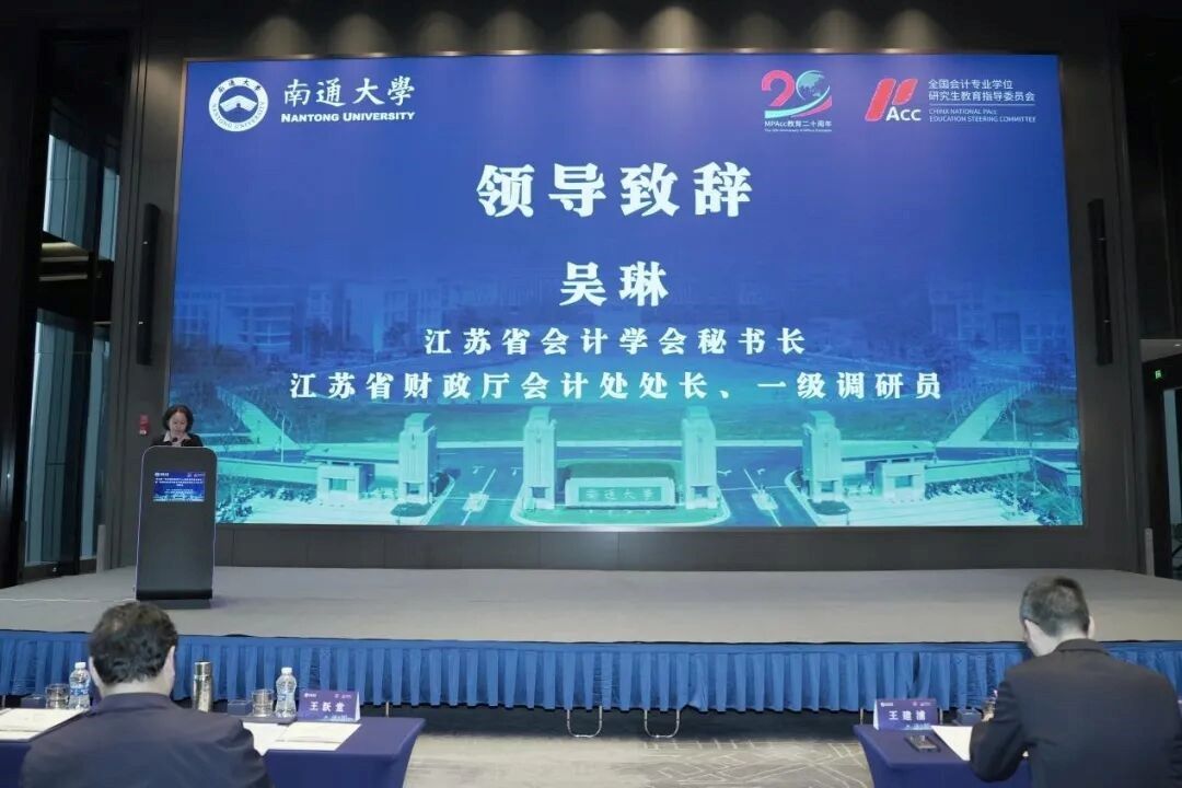 江苏省财政厅一级调研员、会计处处长、江苏省会计学会秘书长吴琳,南通市财政局局长曹金海,江苏省MPAcc教育联合会理事长、教育部长江学者特聘教授、会计教指委委员、南京大学教授王跃堂等先后致辞,充分肯定了江苏省高校MPAcc教育发展高层论坛在推动全省会计人才培养方面的重要作用,并一致强调,面对汹涌澎湃的数智化浪潮,会计高等教育必须主动求变,深化产教融合,培养出能够适应并引领未来商业发展的复合型、创新型高端会计人才。