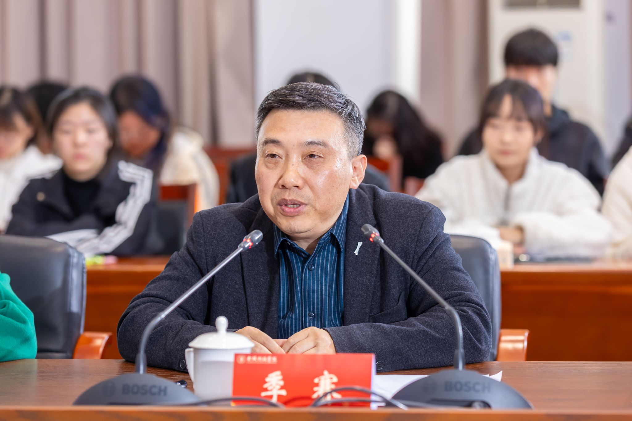 贸易系主任华树春作为教师代表发言,2024级电子商务专业学生周雪妍作为学生代表分享了参与项目的期待与感悟。