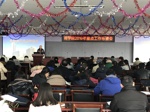 会上,院长顾晓燕首先传达了校党委书记陈小虎、校长聂影在校党委二届五次全会和2019年工作布置会上的讲话精神,然后从提高站位,抓好党的建设;认证评估,推进专业建设;立德树人,提高培养质量;创新作为,提升科研水平;对标对表,紧扣两升目标;凝心聚力,共创和谐家园六个方面对学院的重点工作进行了安排。随后,院党委副书记朱骅、副院长陶应虎、副院长刘磊分别就学生工作、教学工作和科研工作做了详细布置。院党委副书记(主持工作)陆国晓总结发言,并强调全体教职工要努力维护学院的安全稳定,重申了政治安全、学生安全等工作的重要性。