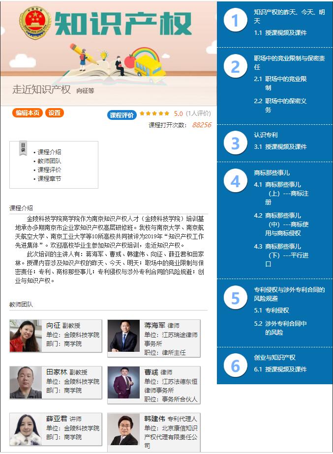南京市知识产权人才培训基地于2020年4月26日至5月26日举办了面向高校毕业生的知识产权线上培训。本次培训课程内容为高校毕业生量身定制,聚焦于毕业生高度关注的职场中知识产权问题,设置了6个培训专题,由成人抖音