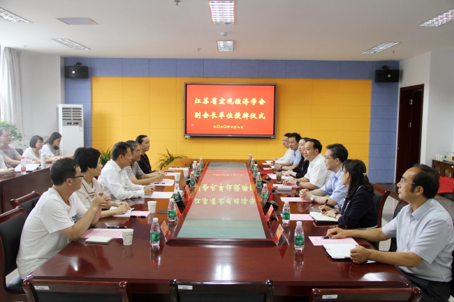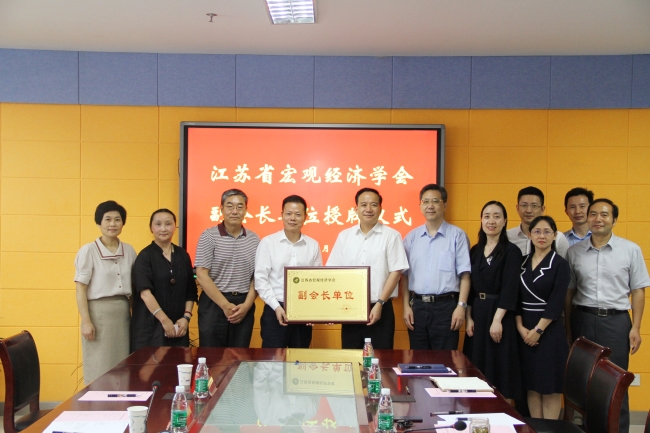 在江宁校区3号科技楼409会议室举行江苏省宏观经济学会副会长单位授牌仪式。江苏省宏观经济学会副会长汪涵、副秘书长华文,成人抖音
