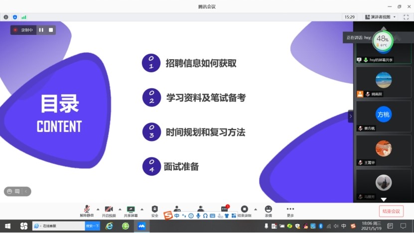 物流管理专业举办关于就业和考验经验的线上分享会时间持续一个半小时,五位同学从笔试、面试、简历制作等多个方面详细生动地讲解了自己就业的成功经验,不仅为即将毕业的同学提供了宝贵的就业经验,也为物流专业新生以后的奋斗方向提供了思路和动力。会议受到了同学们的一致好评,促进了后续考研就业工作的顺利开展。