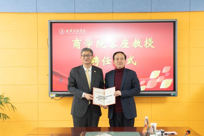 王宝敏、束兰根均表示,此次受聘金陵科技学院客座教授,既是一份荣誉,也是一份责任,更是一份融入。作为金科院大家庭的一份子,必将尽心尽力履行客座教授职责,竭尽全力地发挥专业实践优势,充分调动资源,无缝对接合作,融入发展大局,全面助推成人抖音