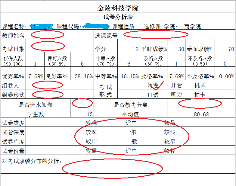 教师须在“试卷分析”一栏中需详加分析,具体要求请见下图教务处通知。