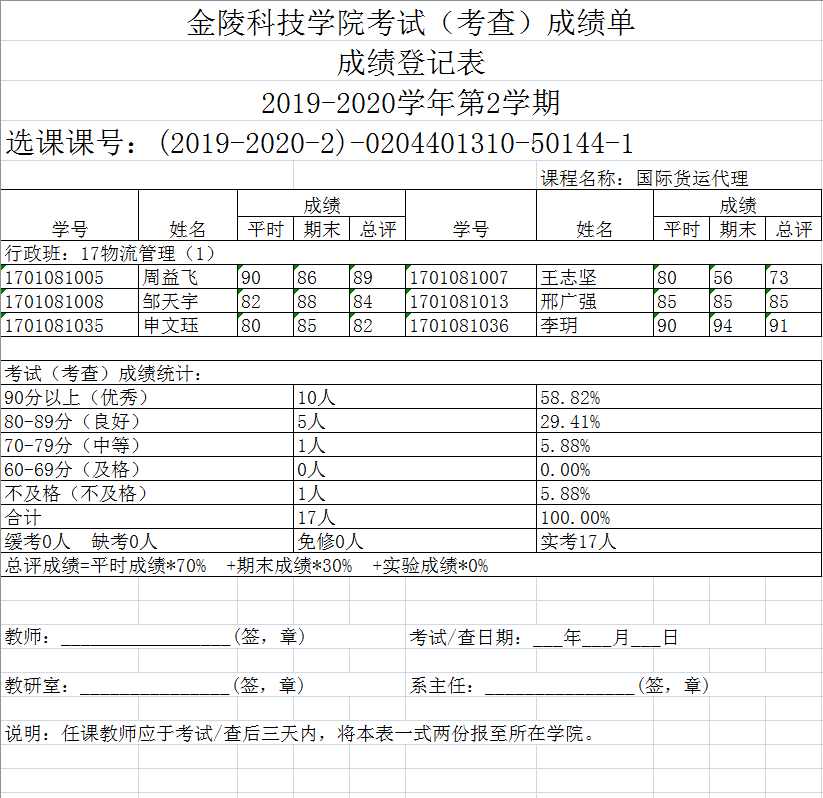 平时成绩与期末成绩记分比例有变动的应提前报开课学院(部)批准,不得随意修改。