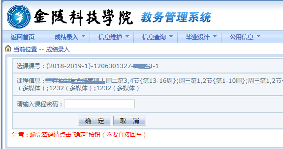 请任课老师规范录入、及时保存、仔细核对无误后慎重提交。成绩提交后任课教师无法修改。万一发生提交错误,请QQ私聊熊杜宁提供以下信息,学院汇总后统一反馈给教务处,系统放开后方可重新提交。(注:教务处非上班时间不办公)