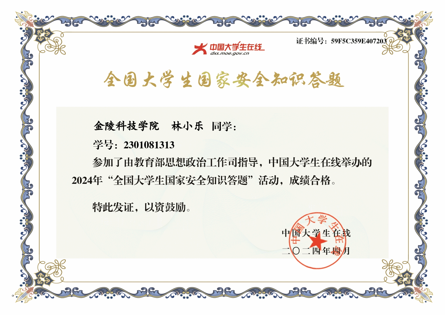 4月10日至4月17日期间,组织各班级参与中国大学生在线网站(//dxs.moe.gov.cn)或微信公众号开展"全国大学生国家安全知识答题”。部分截图如下: