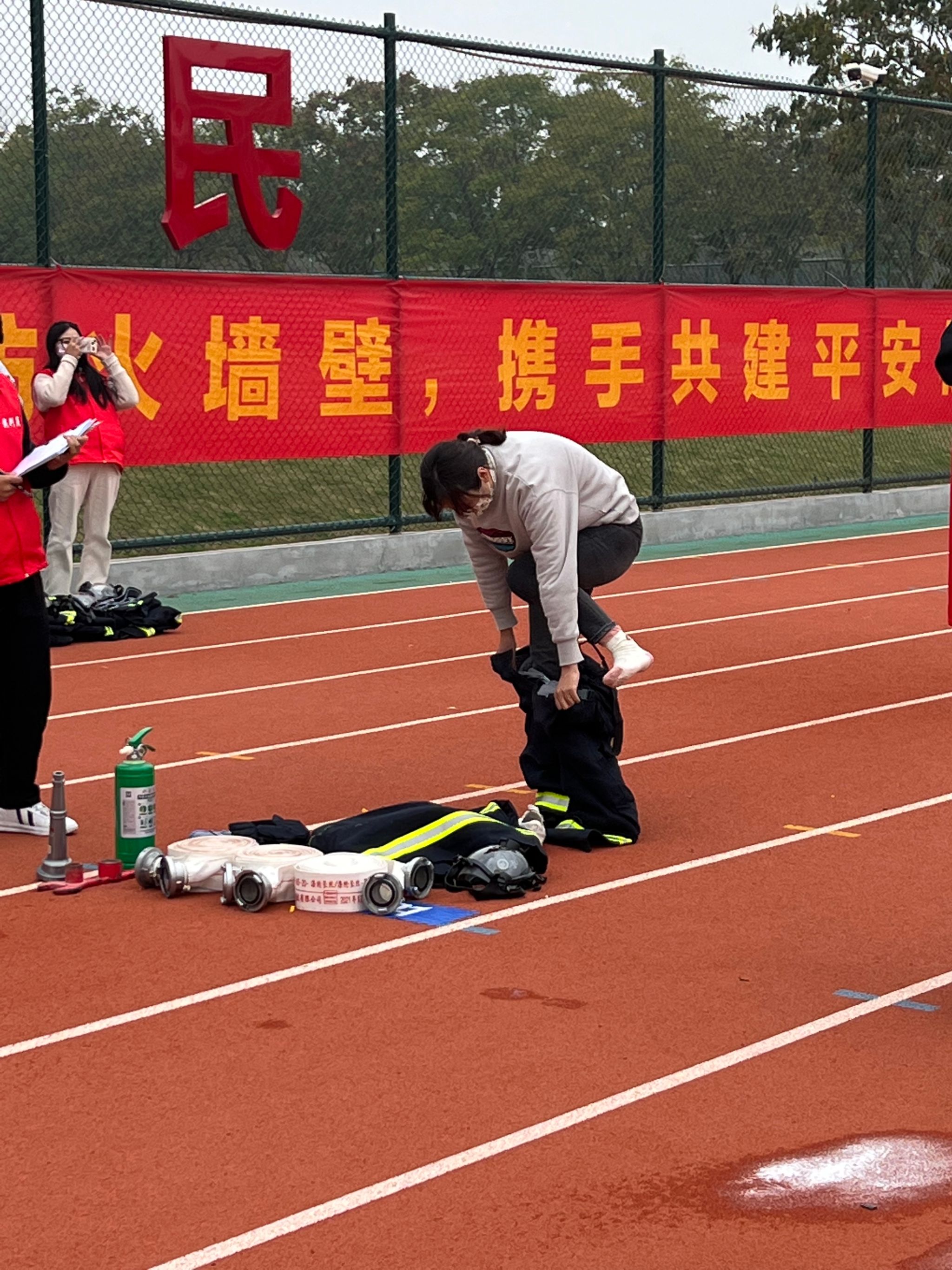 为使参赛队赛熟知比赛流程和具体操作要求,赛前专门组织了消防培训,并录制比赛规范操作的视频方便随时学习。消防等部队退伍20名校园消防安全员学生担任了本次活动的裁判工作。比赛融竞争性、趣味性、健身性、教育性于一体,设置模拟报警、消防服着装、铺设水带、规范灭火等4个项目,将消防常识寓于各个环节之中,通过模拟火灾中遇到的不同情况,锻炼参赛者处乱不惊、沉着冷静扑救火灾和逃生自救的能力。