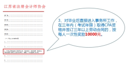 各大城市对于CPA持证者提供了各项政策支持,政府津贴、人才落户、职称评定等。如江苏省对毕业后直接进入事务所工作,在三年内(考试年限)取得CPA资格并签订三年以上劳动合同的,按每人一次性奖励10000元。