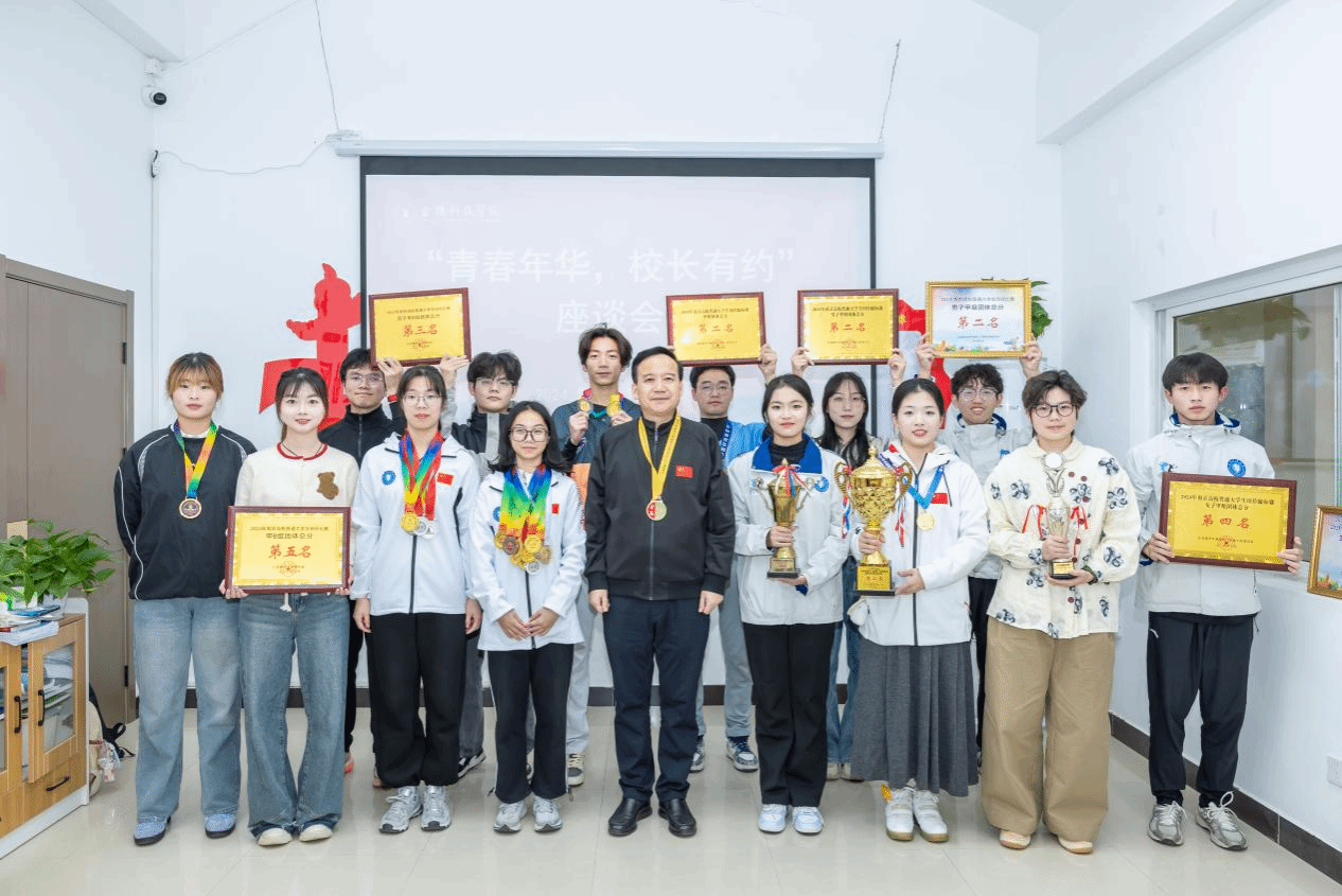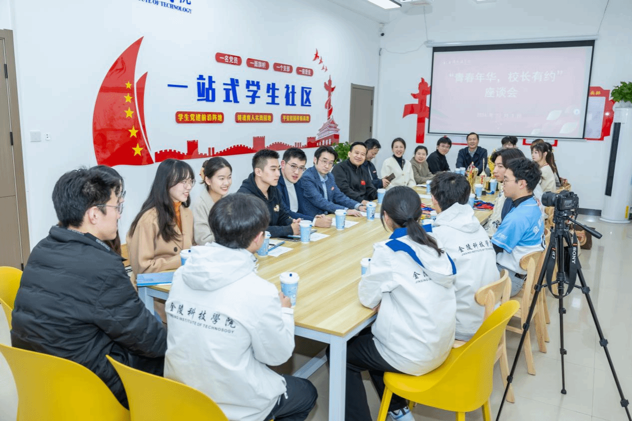 在江宁校区南区07栋学生一站式社区活动室举办“青春年华,校长有约”座谈会。校长刘永彪受邀与学生体育标兵代表交流探讨,校长办公室主任庞海燕、成人抖音