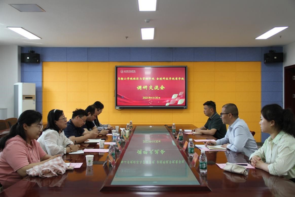 4月30日上午,马鞍山学院经管学院院长葛腾飞、院党总支书记周康、副院长梁秋霞等一行到访我院调研交流。学院副院长黄阳、实验中心主任孙晶、会计系副主任刘源等参加了本次会议。