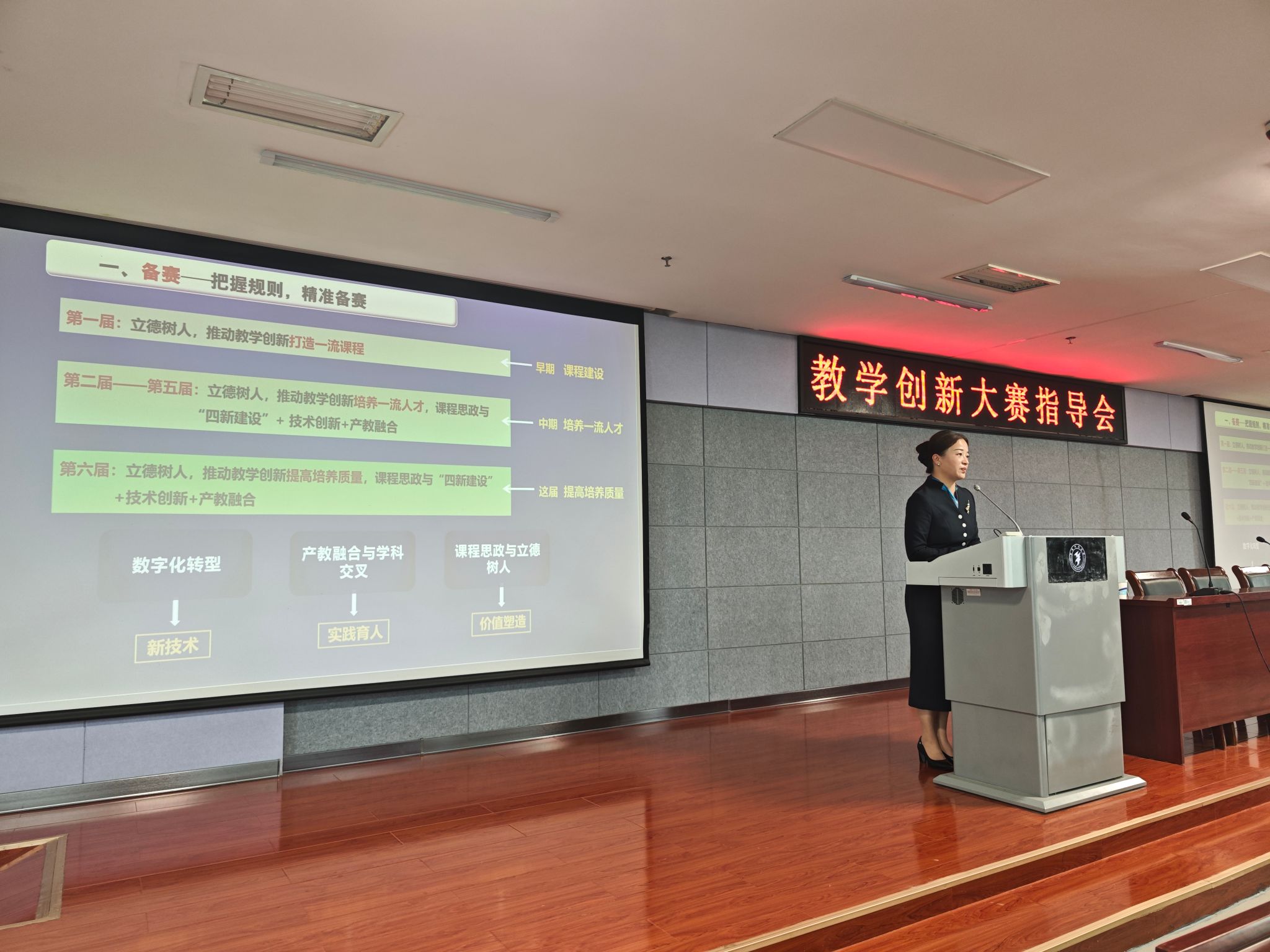 2025年10月15日下午,成人抖音 召开教学创新大赛指导会,会议由刘磊院长主持,范丽副教授为全院专任教师作指导。