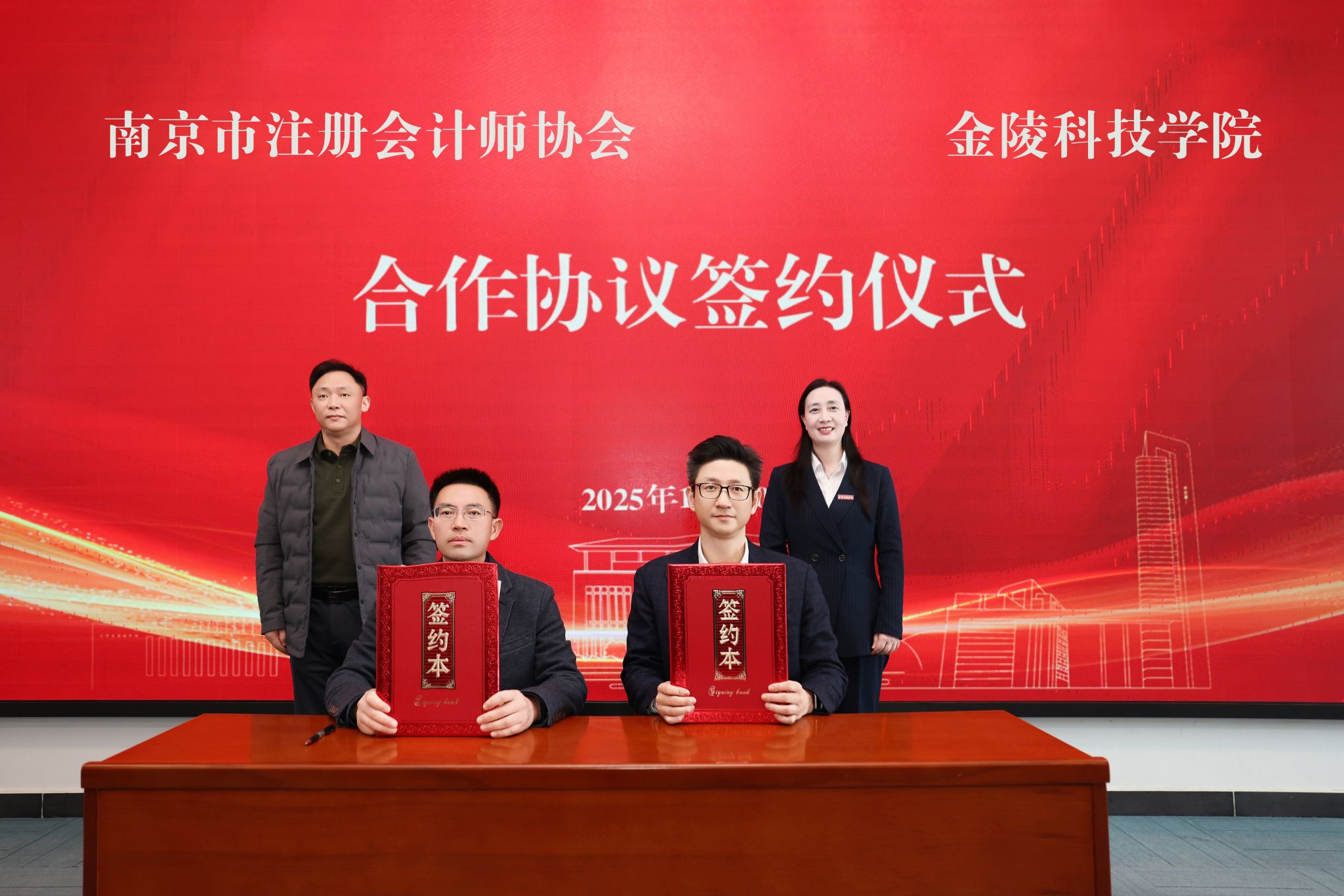 与南京市注册会计师协会合作签约与揭牌仪式在3号科技楼110会议室举行。校会双方共同开展产教融合、协同育人,旨在培养适应新时代发展的高素质会计人才。