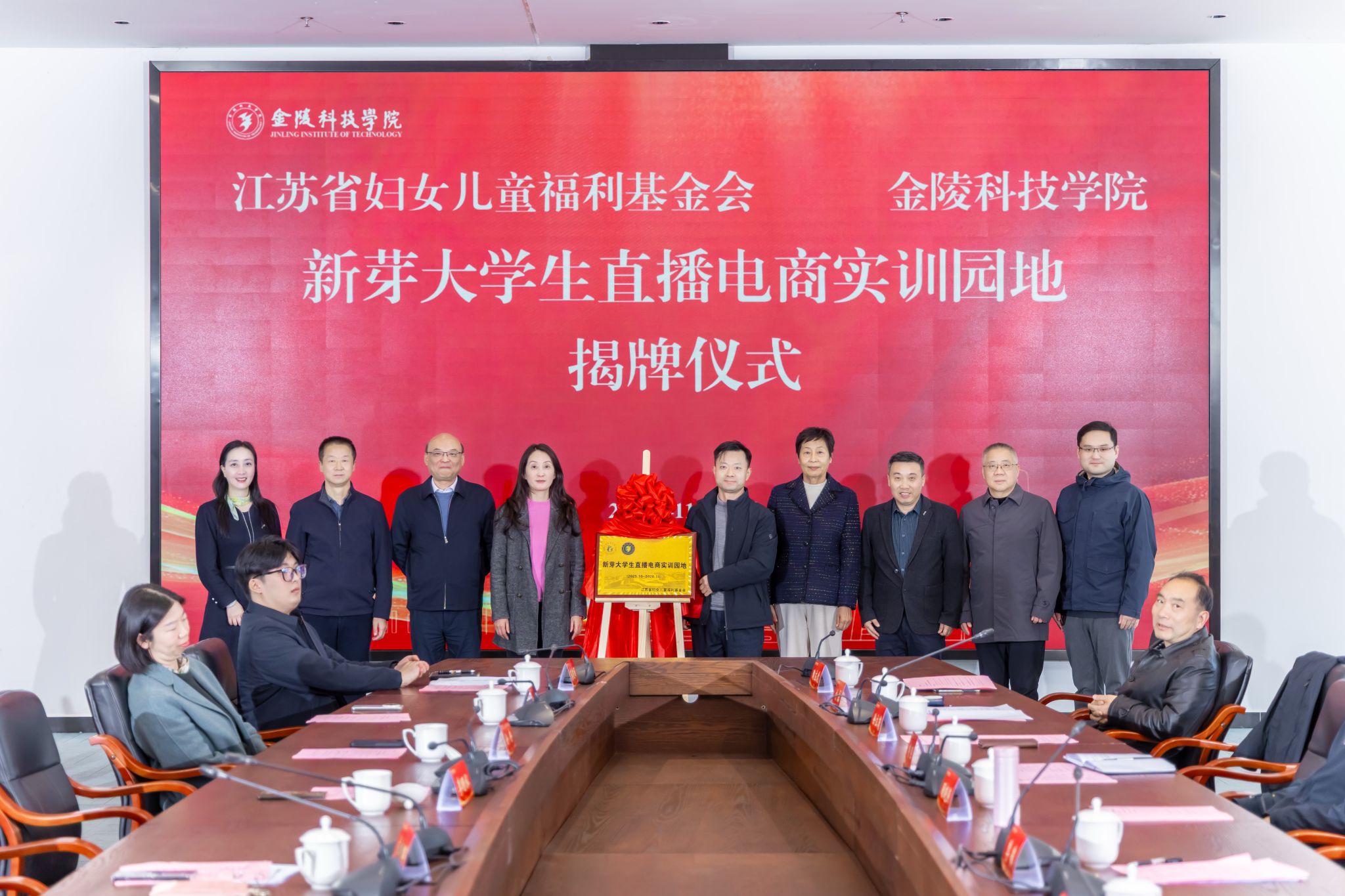 与江苏省妇女儿童福利基金会在3号科技楼110会议室举行直播设备捐赠暨“新芽大学生直播电商实训园地”揭牌仪式。江苏省妇女儿童福利基金会副理事长宋晓辉,南京市农业农村局副局长李明水,南京市人社局一级调研员吴传军,成人抖音
