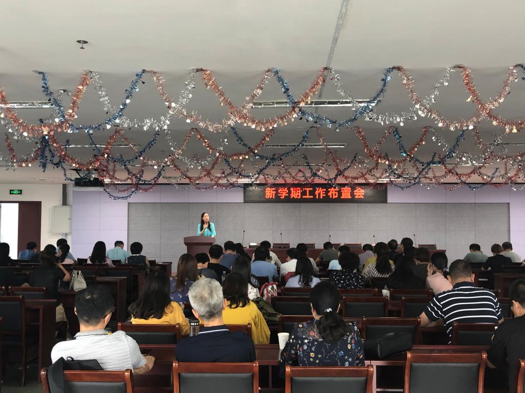 会上,顾晓燕院长首先对学院上学期的工作和暑期工作进行了总结与分析,随后对学院新学期的重点工作进行了安排部署,并提醒全体教工保持良好的心态、注意劳逸结合。院党委副书记(主持工作)陆国晓对2019届毕业班的就业工作进行了总结,并对新学期学院的党务工作进行了详细部署,提醒任课老师提高政治觉悟、重视对学生的思想政治教育,并重申了学院安全稳定工作的重要性。随后,院党委副书记朱骅、副院长陶应虎、副院长刘磊分别就学生工作、教学工作和科研工作对新学期的各项任务做了详细布置。