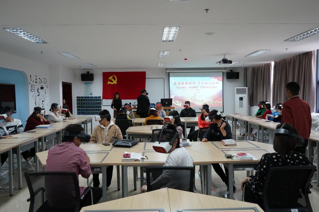 此外,全体师生党员分批进行了由江苏省地理信息产业研究院带来的重走长征路VR体验。在15分钟的沉浸式体验中,利用科技手段将体验者带到一个虚拟展馆,不仅还原了遵义会议、飞夺泸定桥的场景,还呈现了红军翻雪山、过草地的艰辛,使用全景互动的方式,让党员们进一步了解了长征路线,身临其境地体会了红军长征的艰难与不易,深刻理解了长征精神,引导广大党员不忘历史,不忘初心,始终保持奋斗精神和革命精神。