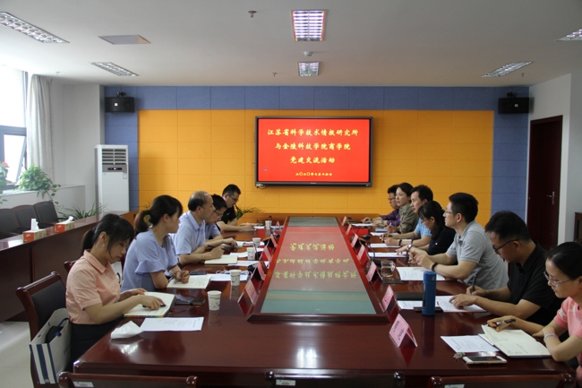与江苏省科学技术情报研究所在3号科技楼409会议室开展了党建交流活动。江苏省科学技术情报研究所党委委员、办公室主任鲁旭、产业技术研究中心主任黄斌、办公室副主任王利军、产业技术研究中心副主任刘媛、助理研究员汪晓燕,成人抖音