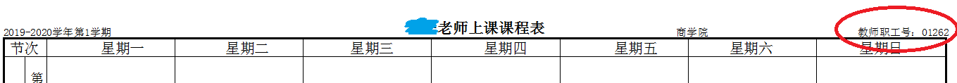 用户名为教师职工号(工号可见教师本人的课程表右上角,如下图),初始密码为姓名拼音首字母+6个0。请老师及时更改密码,若老师不慎将更改后的密码遗忘,请联系教务处老师查询(电话86188805)。