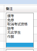 “缺考”、“作弊”、“取消考试资格”的学生,成绩栏内应如实选择录入。考场违纪学生的成绩,请按教务通知的内容记录,切勿自作主张。在全程考勤的情况下,学生无故缺课累计超过该门课程学期总学时数的1/3时(在抽查考勤情况下,三次抽查无故未到课的学生),不得参加该课程考核,该课程成绩以“取消考试资格”记录。