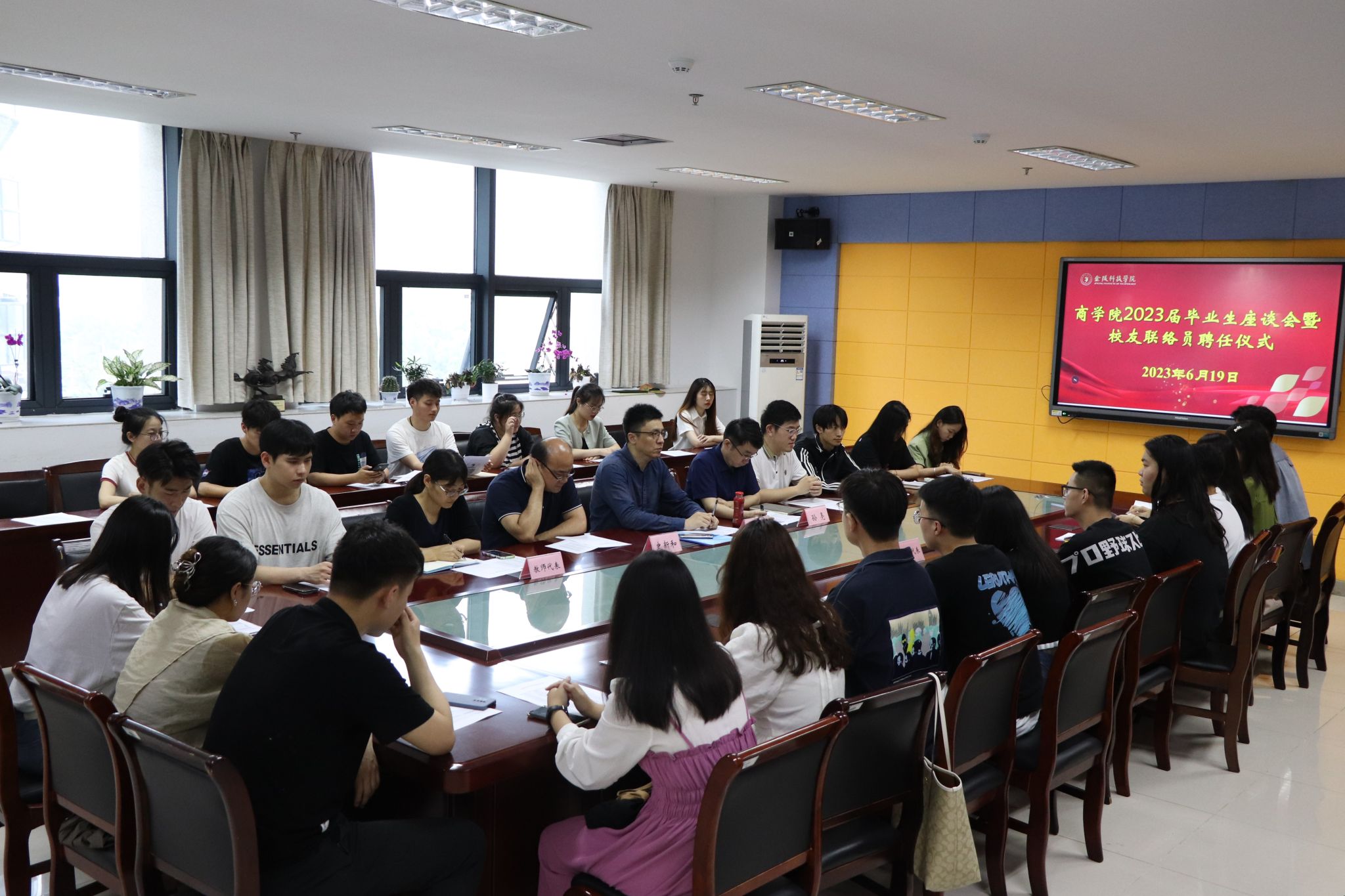 为倾听毕业生声音、了解毕业生对学院发展的意见和建议,同时也为了进一步做好校友工作,加强校友与校友,校友与母校之间的联系,2023年6月19日下午,我院在3号科技楼409会议室举行2023届校友联络员聘任仪式暨毕业生座谈会。我院党委书记周骏、院党委副书记孙亮、副院长史新和、院校友工作教师联络员郑文杰、毕业班辅导员李欢欢及2023届毕业生代表参加此次会议。会议由院党委副书记孙亮主持。